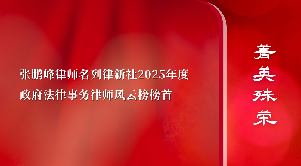 张鹏峰律师名列律新社2025年度政府法律事务律师风云榜榜首。